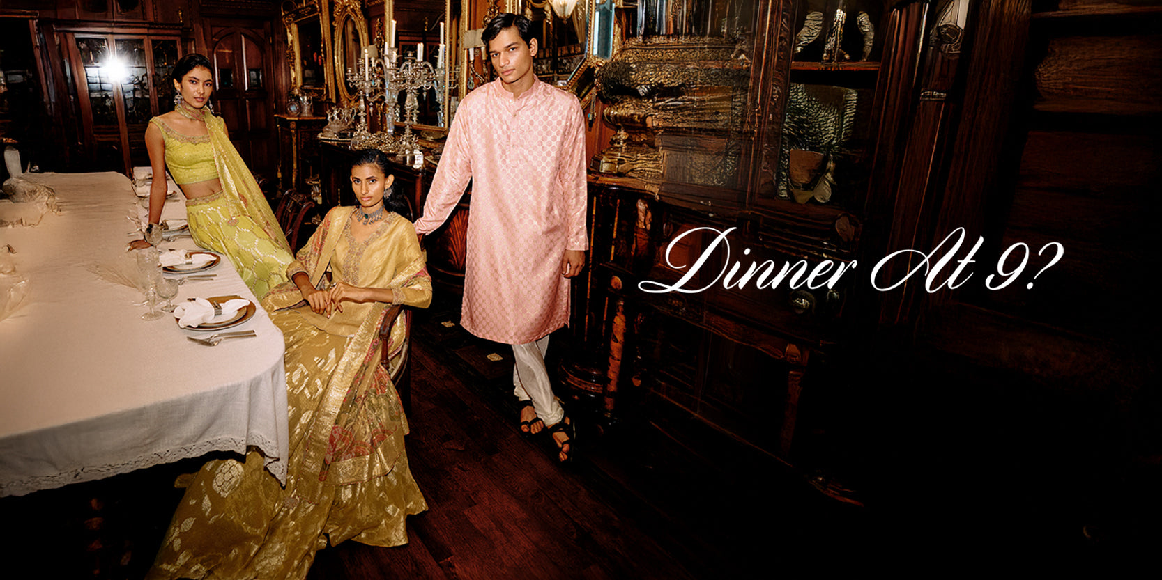 Wanderlust in motion, vibrant lehenga and kurta sets that dance through celebrations. The collection is a mix of coordinated ensembles.