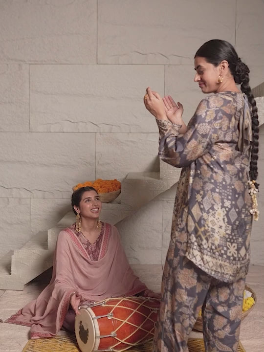 Karva Kurta Set with Dupatta - Pink
