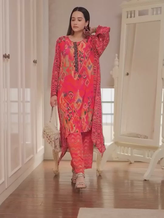 Gul Kurta Set with Dupatta - Fuschia Pink