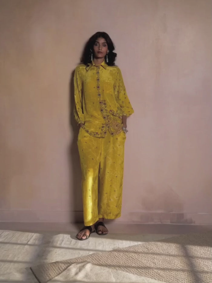 Stipple Shirt and Palazzo Set - Off White